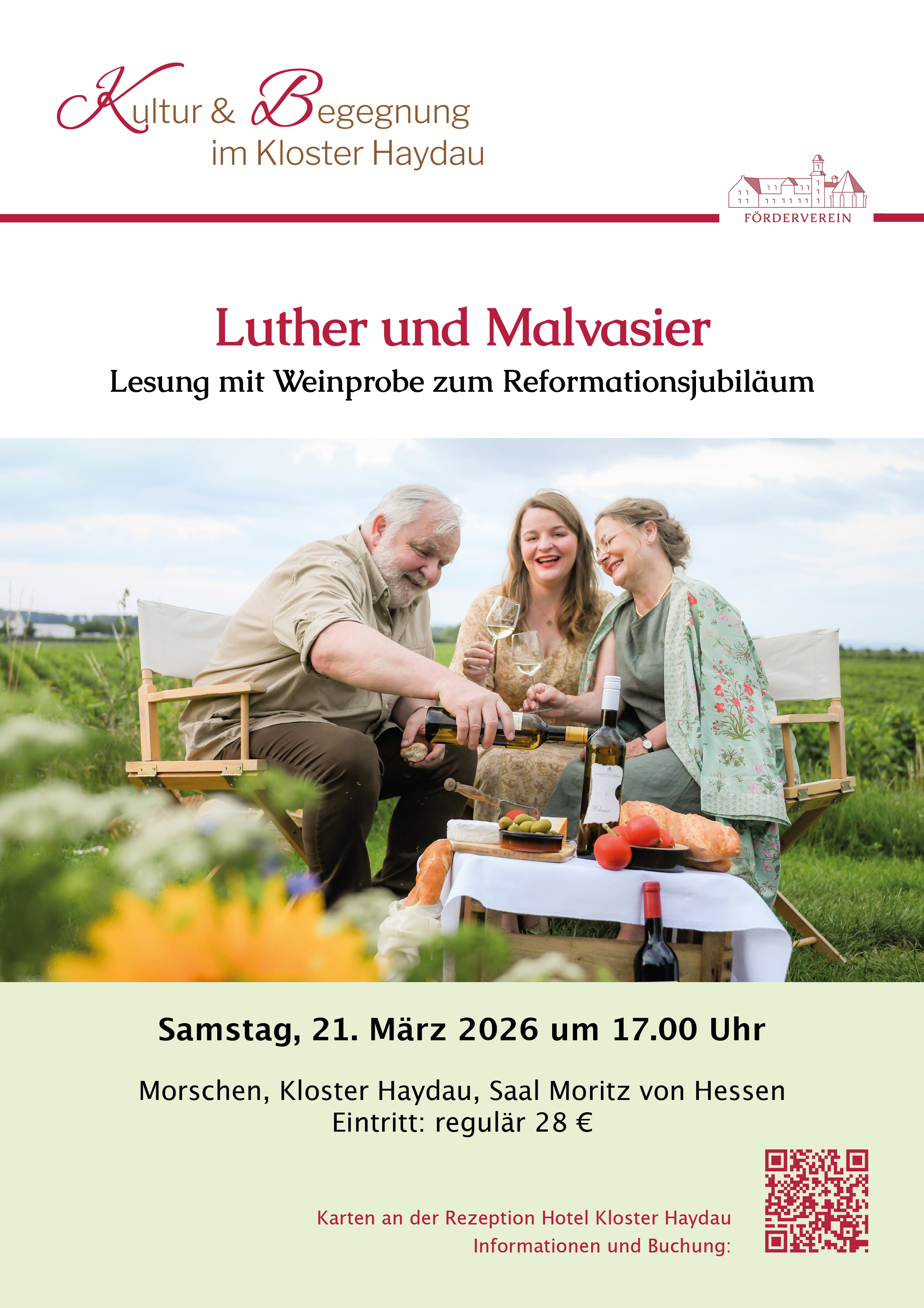 Anlässlich des Reformationsjubiläum bietet das Traditionsweingut H. L. Menger aus Eich am Rhein eine Weinprobe an, die eng mit der kirchlichen Erneuerung des 16. Jahrhunderts eng verbunden ist. Martin Luther schätzte des Malvasierwein und setzte ihn ein, um seine theologischen Konzepte zu veranschaulichen. Mit der Aussage Gott steht nicht mit einem Knüppel hinter dir, sondern mit einem Glas Malvasier vor Dir machte Martin Luther die edelsten Weinsorte des Mittelalters zum Sinnbild seiner Vorstellung von einem gütigen Gott zum zentralen Botschaft seiner Lehre.