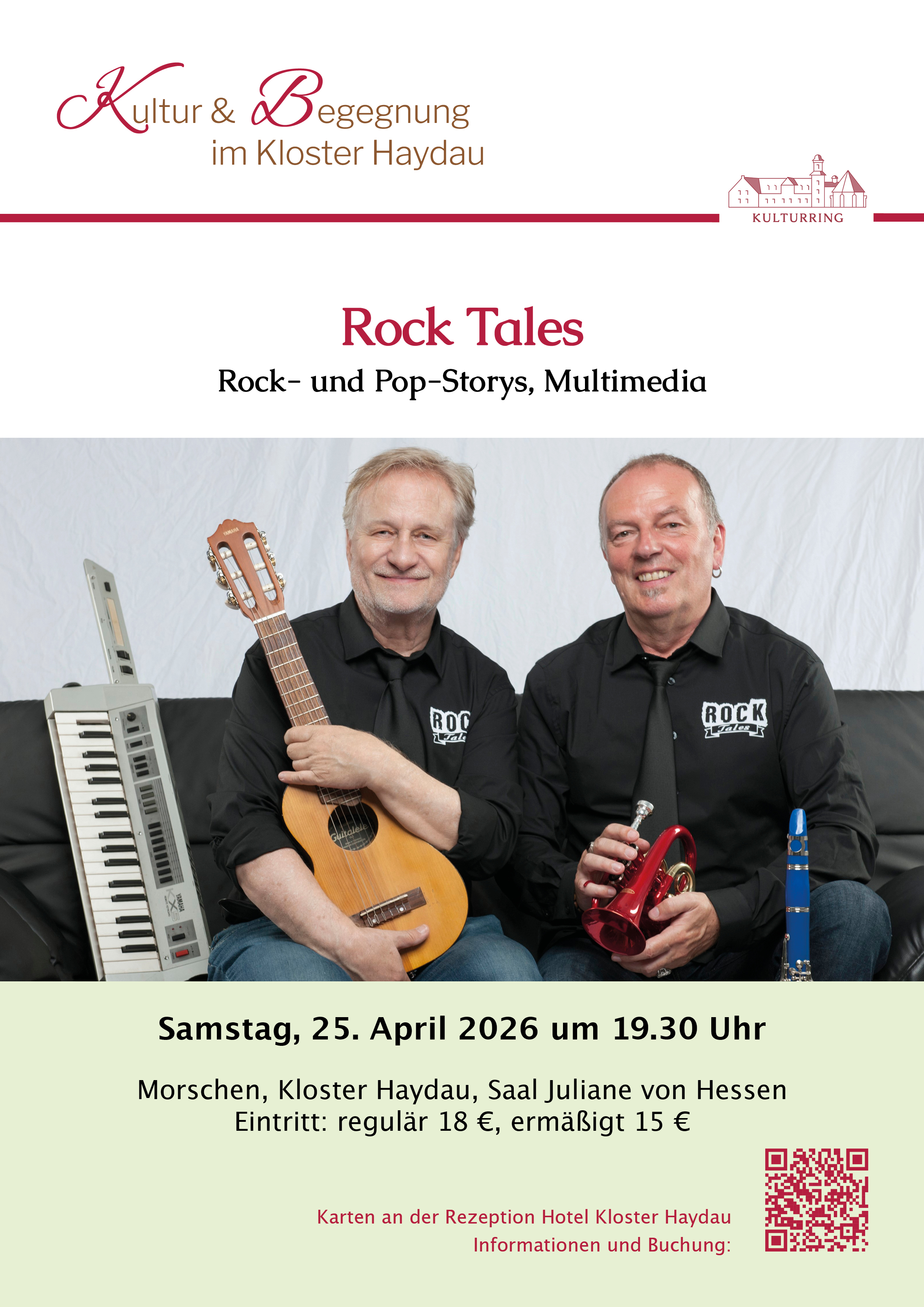 Rock Tales kombiniert mit Videoprojektionen und zum Teil noch nie gezeigten Fotos im Wechsel mit großartiger Live-Musik und echtem Rock’n’Pop-Feeling: die größten Hits und besten Songs der besten Bands und Künstler. - Für Fans und Musik-interessierte, die einmal hinter die Kulissen des Rock- und Pop-Business blicken möchten!